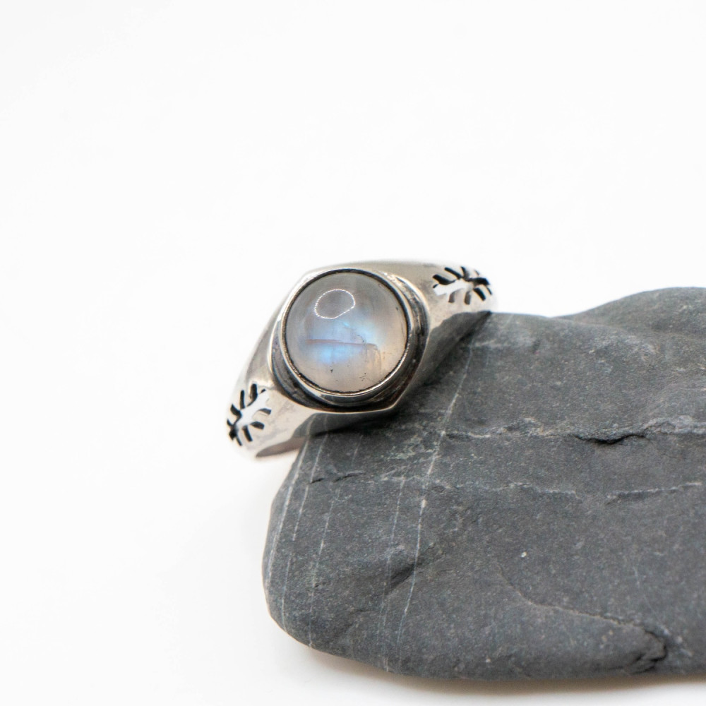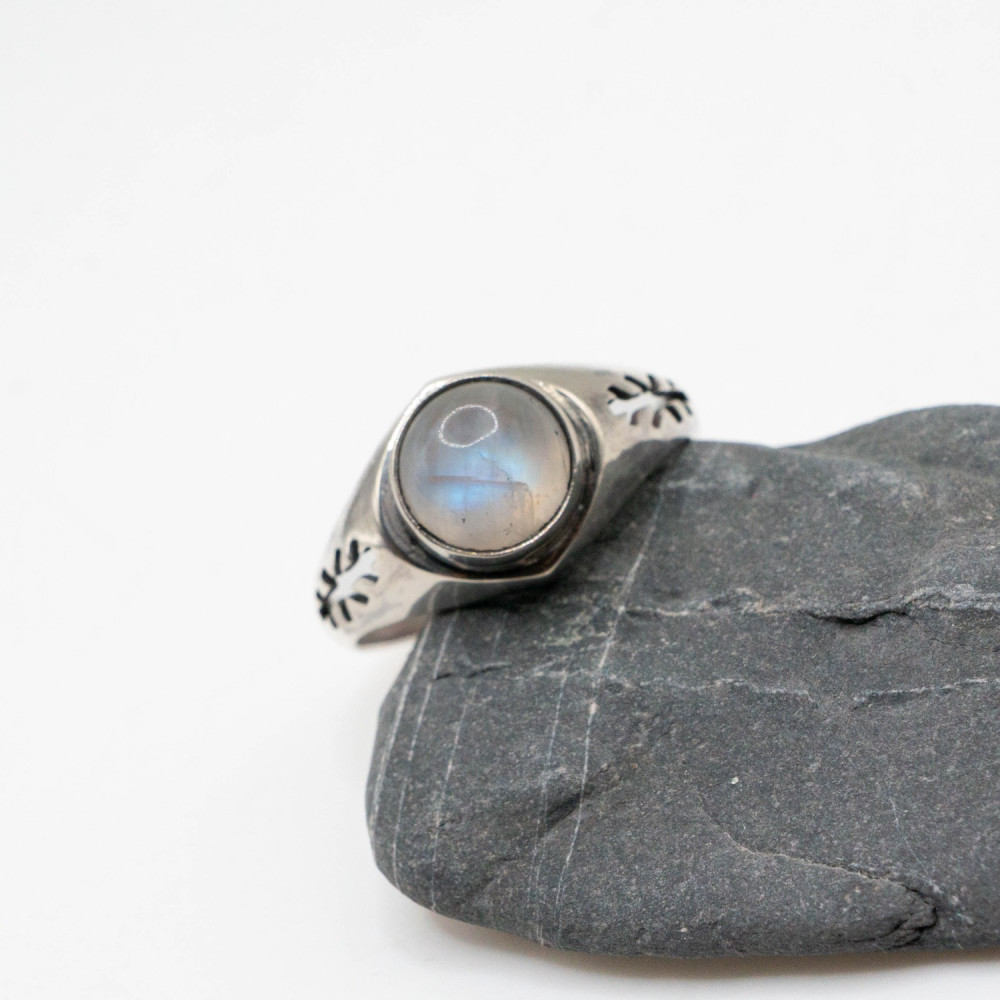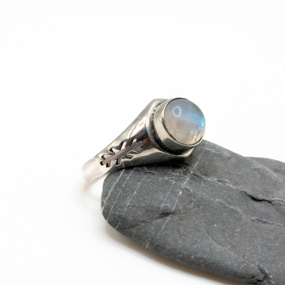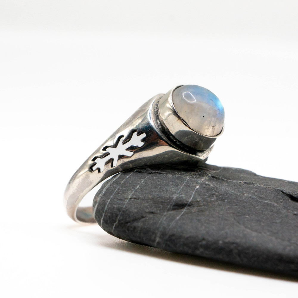 Лунний камінь — це натуральний камінь із загадковим блакитним відблиском, який ніби рухається під поверхнею. Його світіння — ефект адоляресценції — створює відчуття живої глибини. Здавна цей природний мінерал вважали провідником інтуїції та внутрішнього балансу. Кожен екземпляр унікальний, з власною грою світла, яку неможливо повторити.