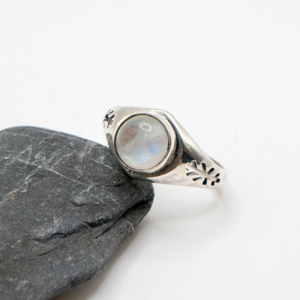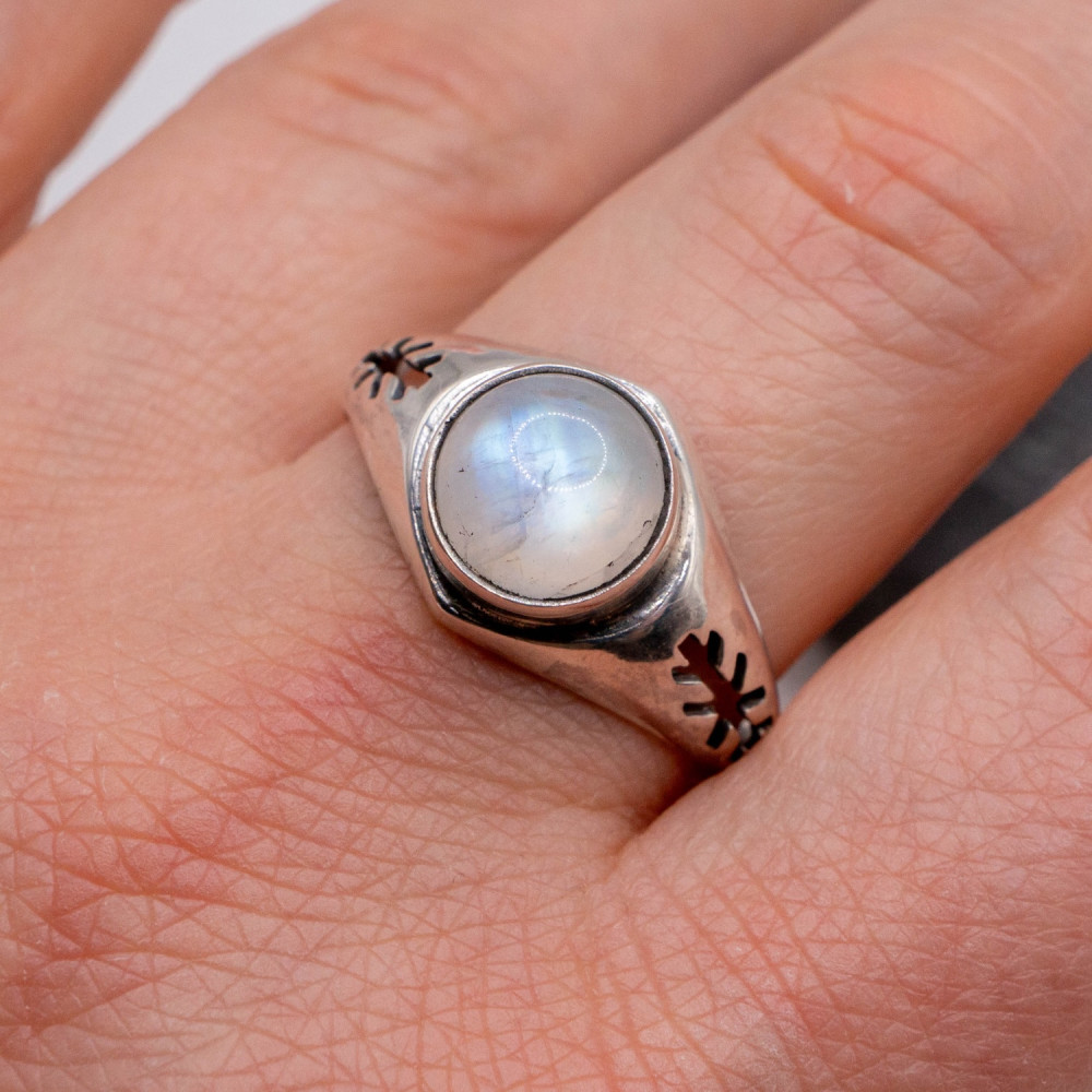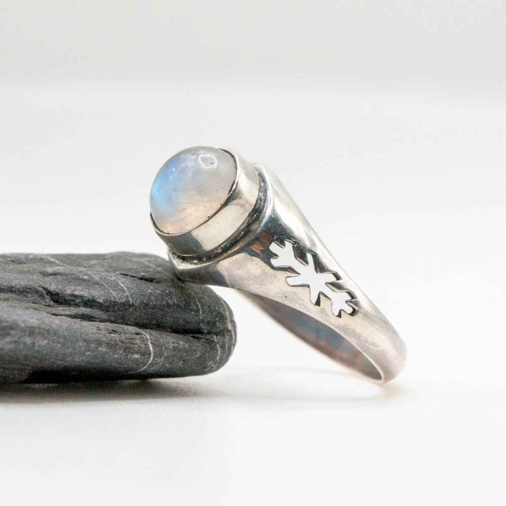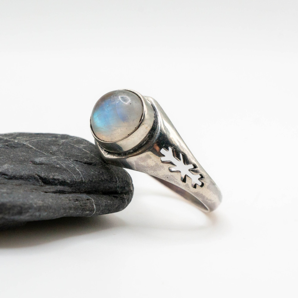 Лунний камінь — це натуральний камінь із загадковим блакитним відблиском, який ніби рухається під поверхнею. Його світіння — ефект адоляресценції — створює відчуття живої глибини. Здавна цей природний мінерал вважали провідником інтуїції та внутрішнього балансу. Кожен екземпляр унікальний, з власною грою світла, яку неможливо повторити.