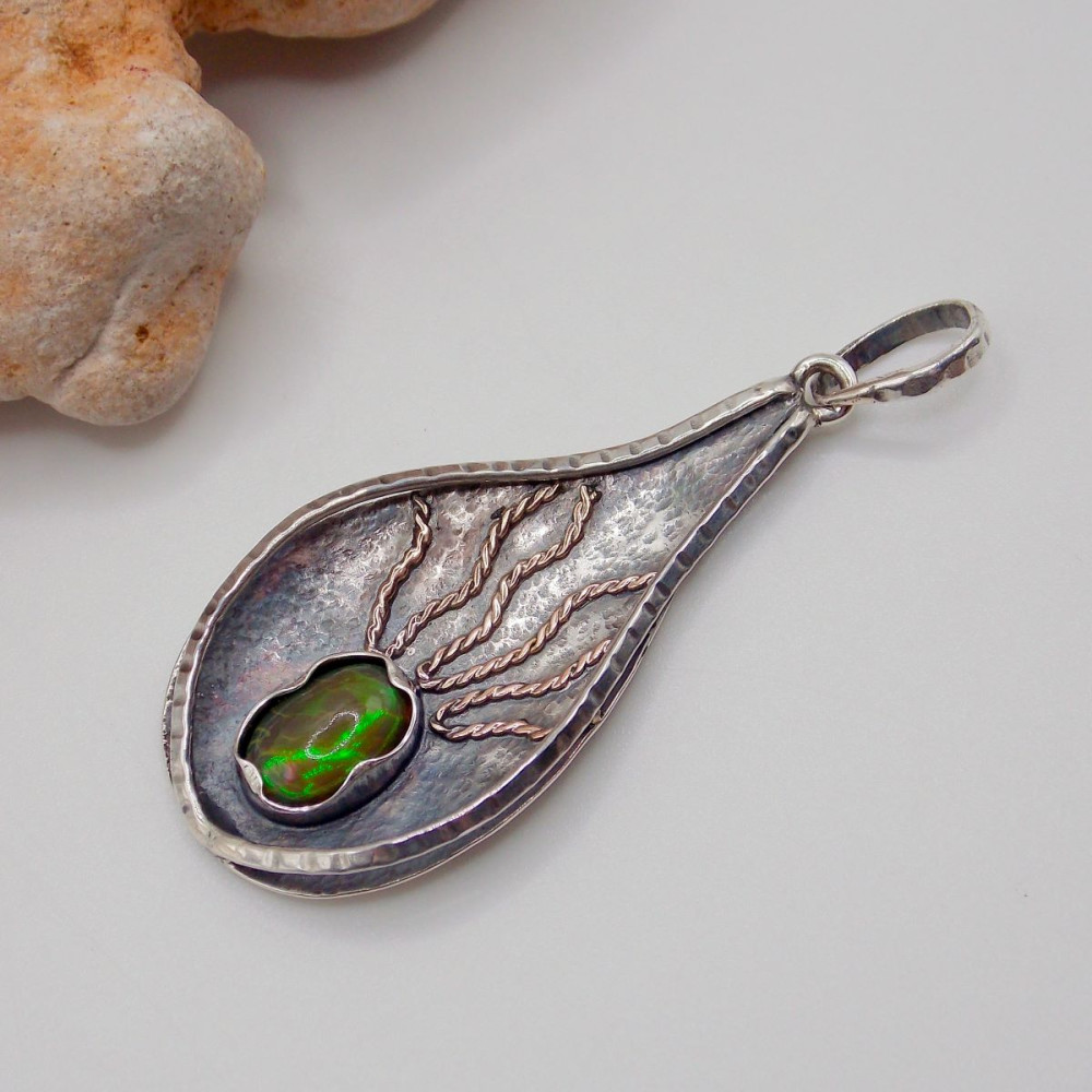 Кулон з опалом у сріблі із золотом "Магічне око"