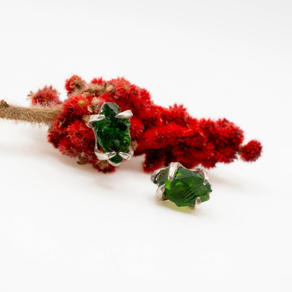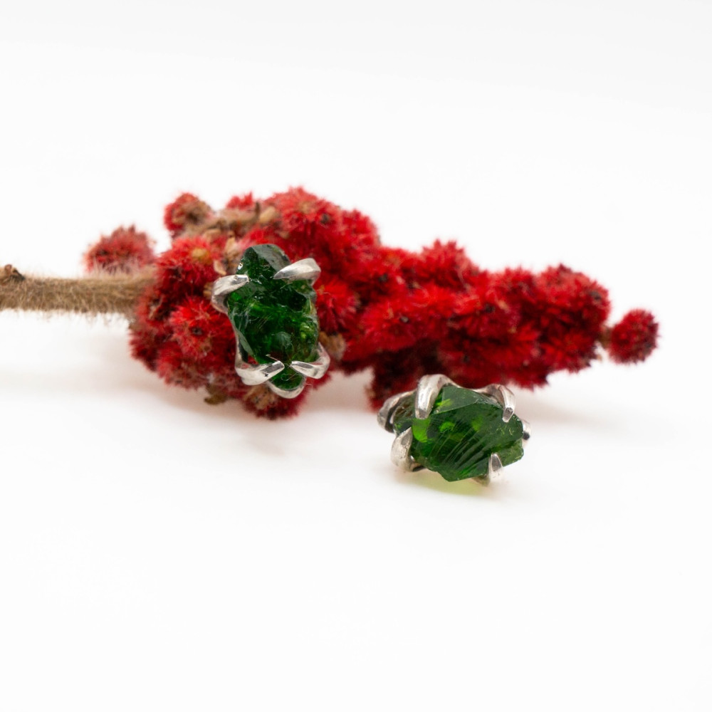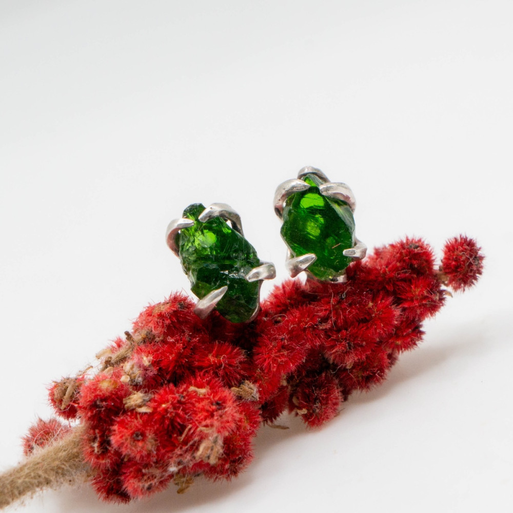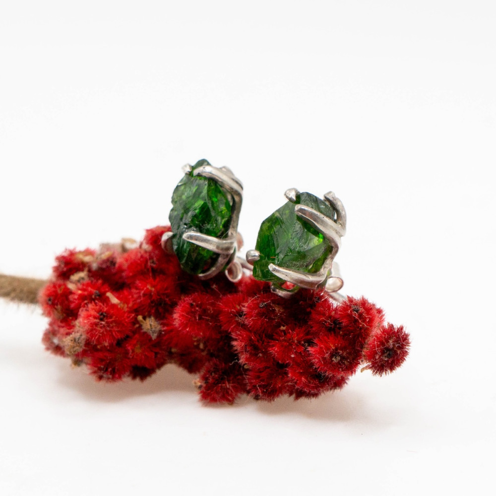 Насичені зелені камінці ніби зберігають у собі подих північних лісів, випромінюють спокій і внутрішню силу. Хромдіопсид часто називають «сибірським смарагдом» за його глибокий відтінок і природну чистоту. Мініатюрні сережки ідеально доповнять будь-який образ — від повсякденного до святкового — і підкреслять природну чарівність своєї власниці.