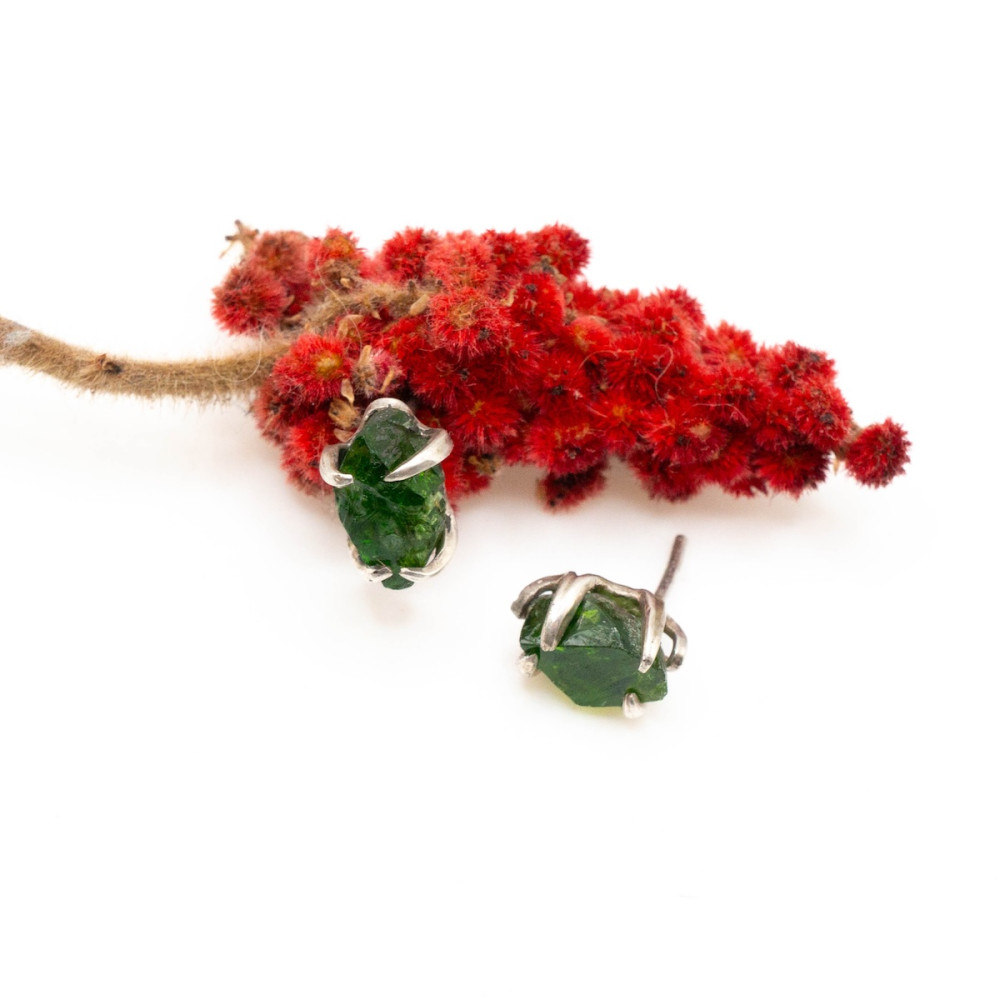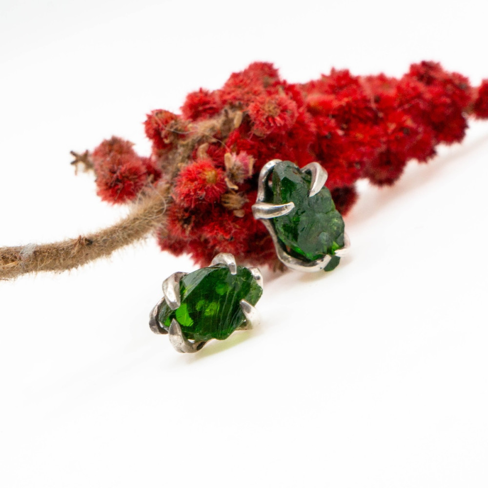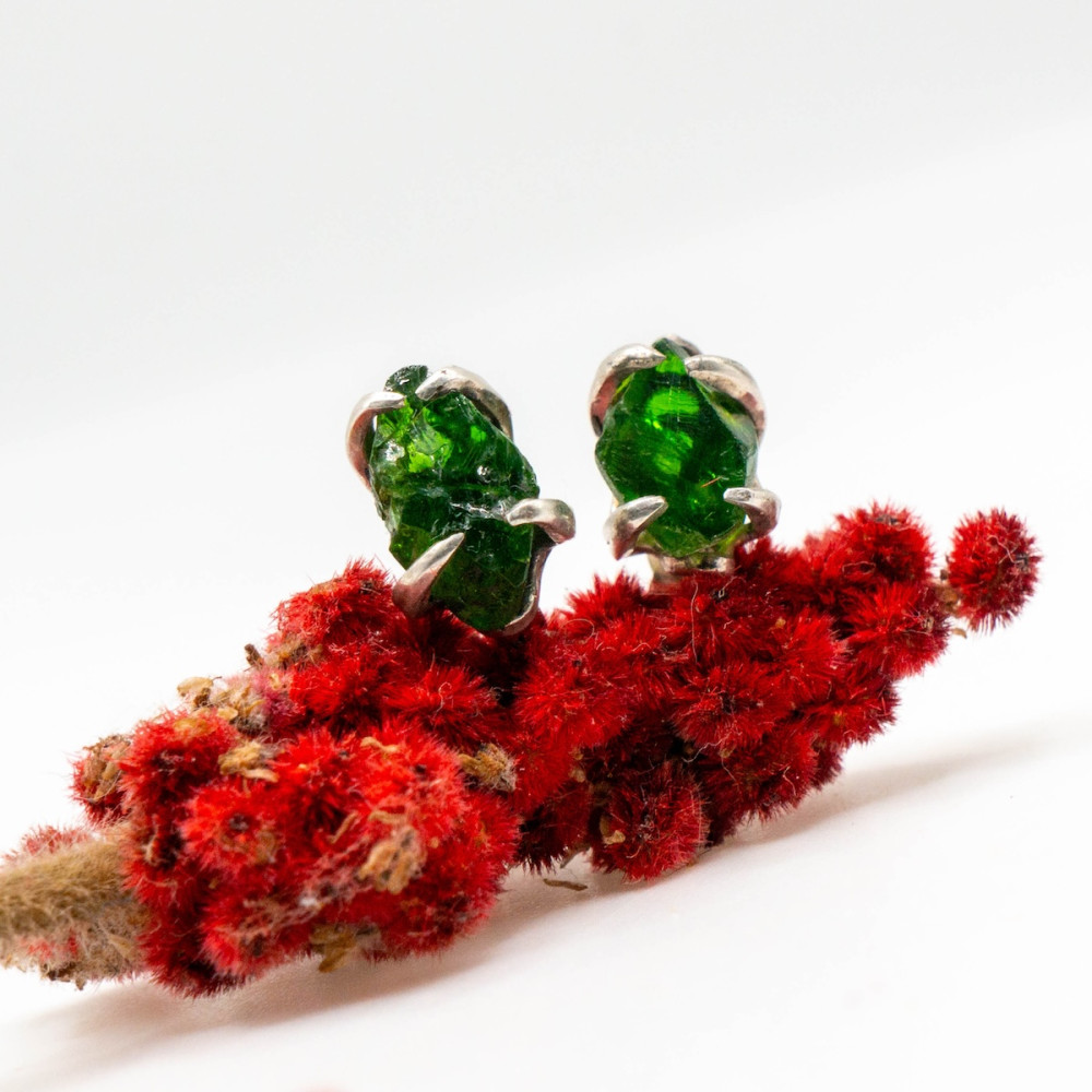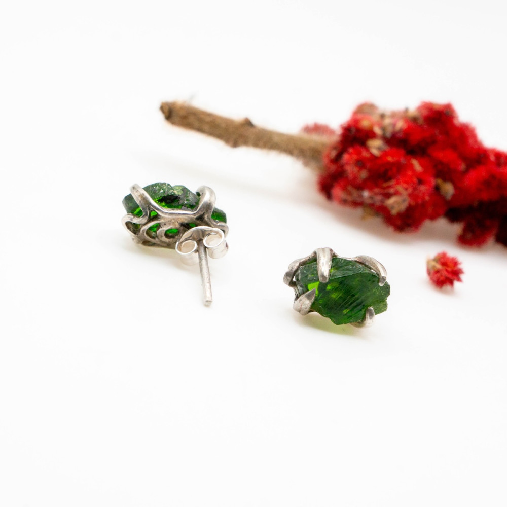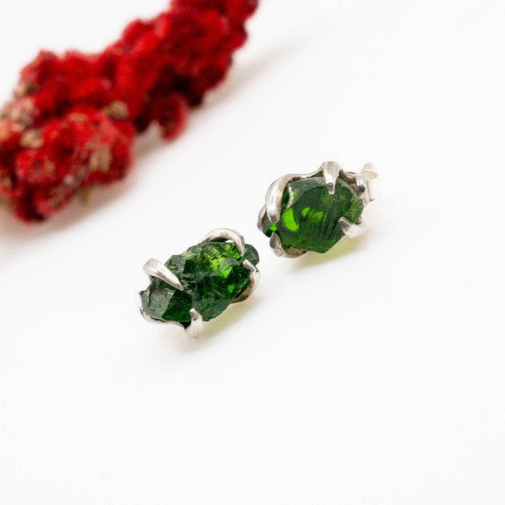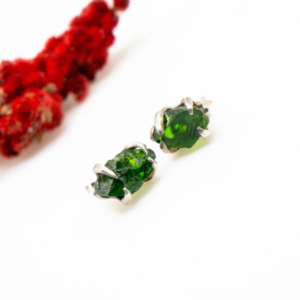 Маленькі срібні сережки-пусети з хромдіопсидом — це прикраса, у якій поєднуються витонченість, природна енергія та гармонія.