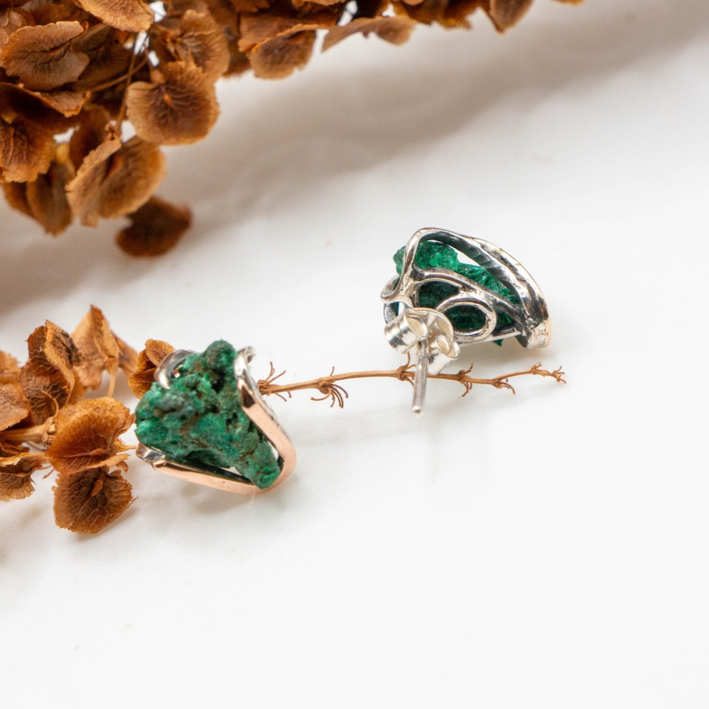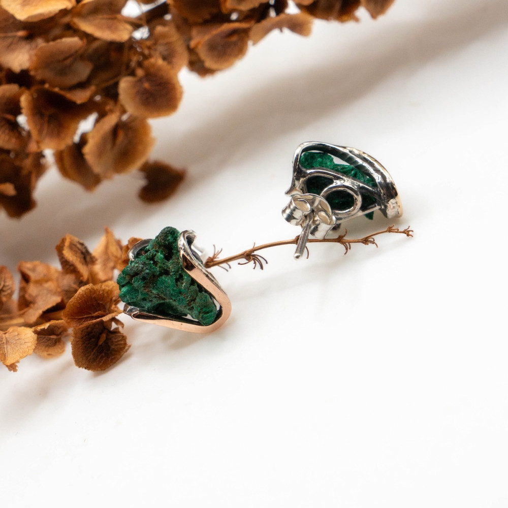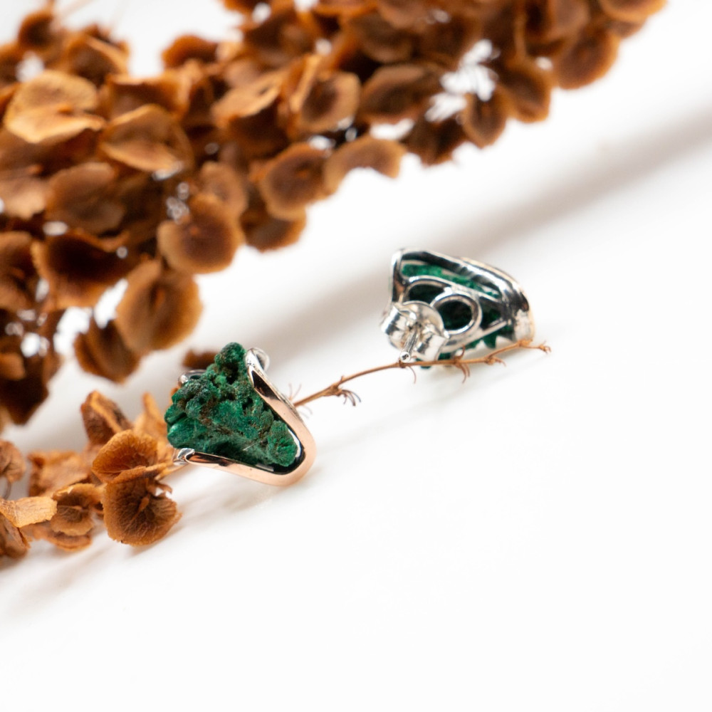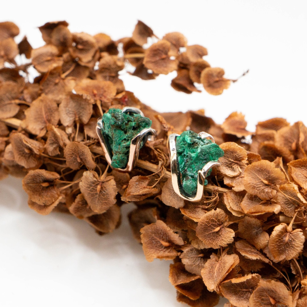 Сережки зі срібла з золотими акцентами та природним малахітом — наче маленькі обереги, створені природою і руками майстра.