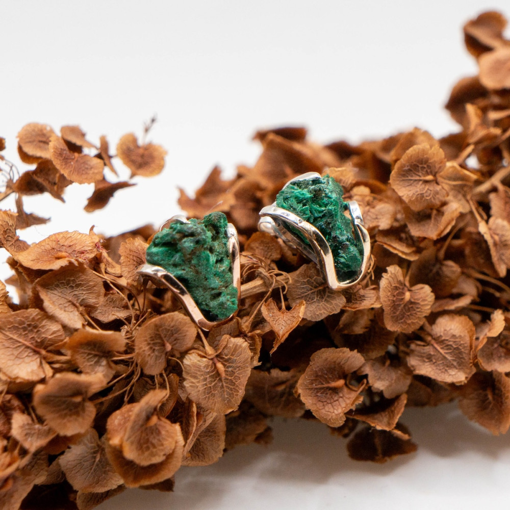 Глибокий зелений перелив малахіту притягує погляд, а поєднання срібла й золота додає вишуканості та тепла.