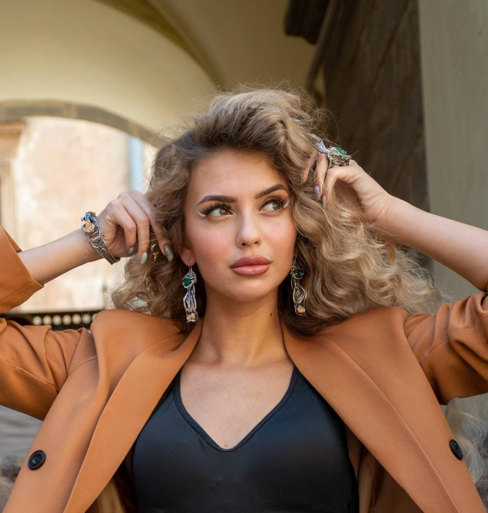 В своїх роботах я використовую метал, зазвичай золото та срібло, а також дорогоцінні каміння та мінерали, серед яких перли, місячний камінь, сапфір, аметист, смарагд, топаз, димчастий кварц, гепатит, чорний турмалін та інші.