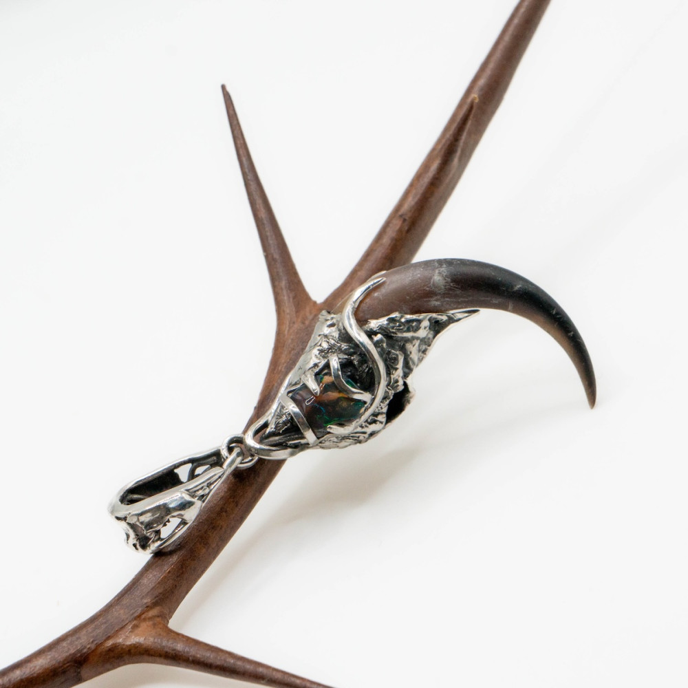 Натуральний опал переливається живими спалахами світла, немов зберігаючи в собі магію місячного сяйва. Його гра кольорів надає кулону глибини й відчуття руху, підсилюючи містичний характер прикраси.