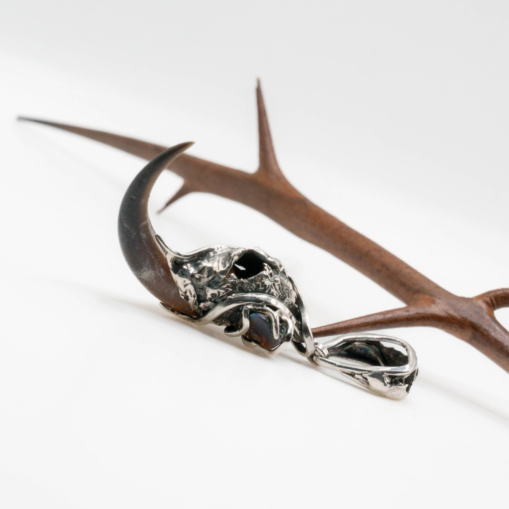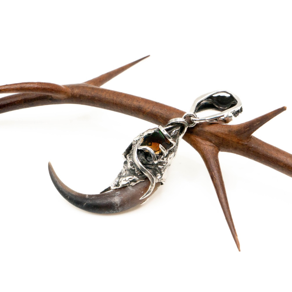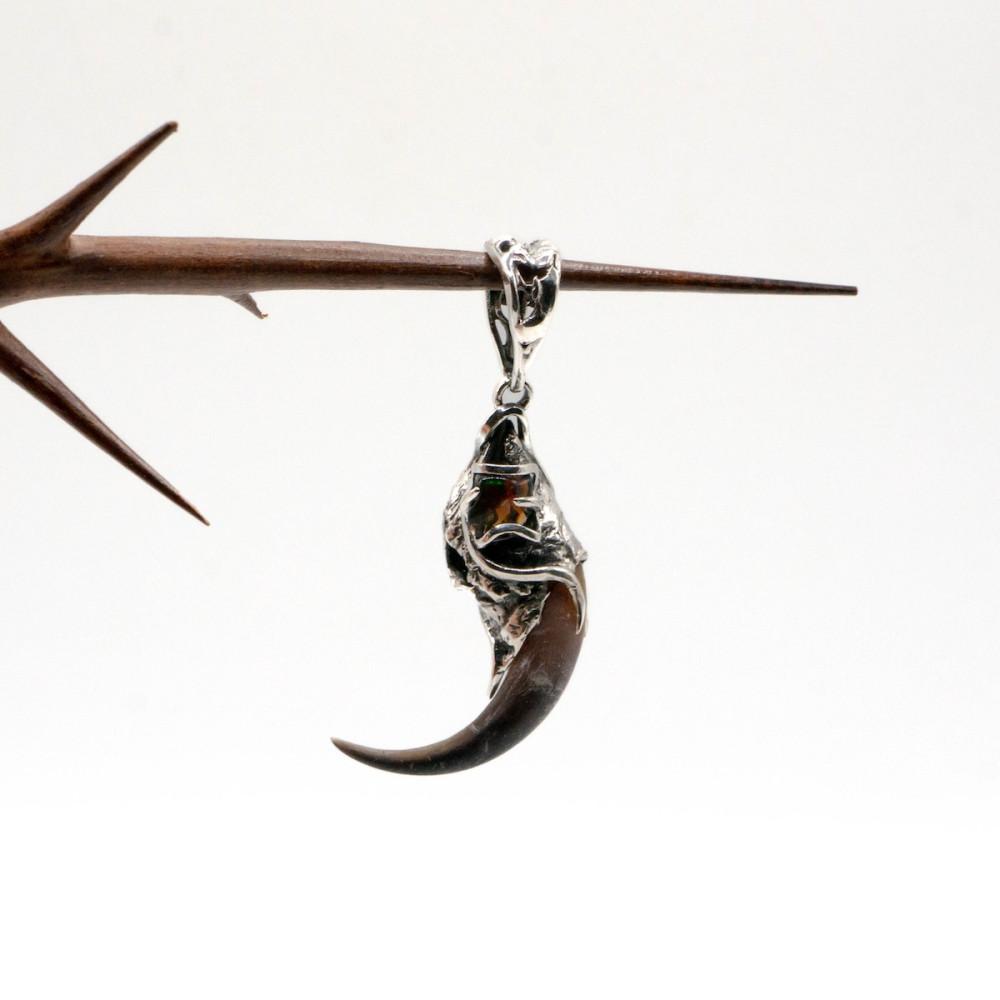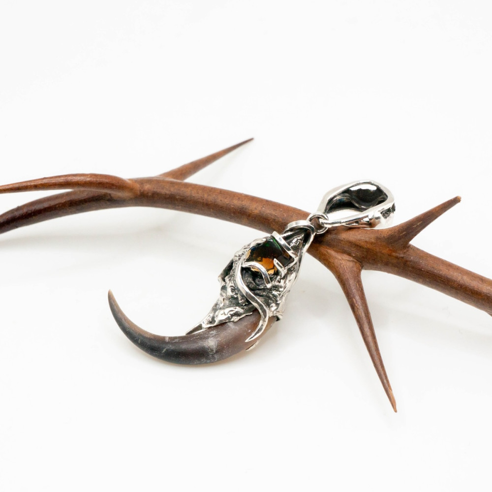 Срібний кулон із кігтем філіна та опалом — прикраса, сповнена таємниці ночі й давньої символіки. Витончено виконаний кіготь філіна уособлює мудрість, захист і загострену інтуїцію, зв’язок із прихованими знаннями та внутрішнім світом.