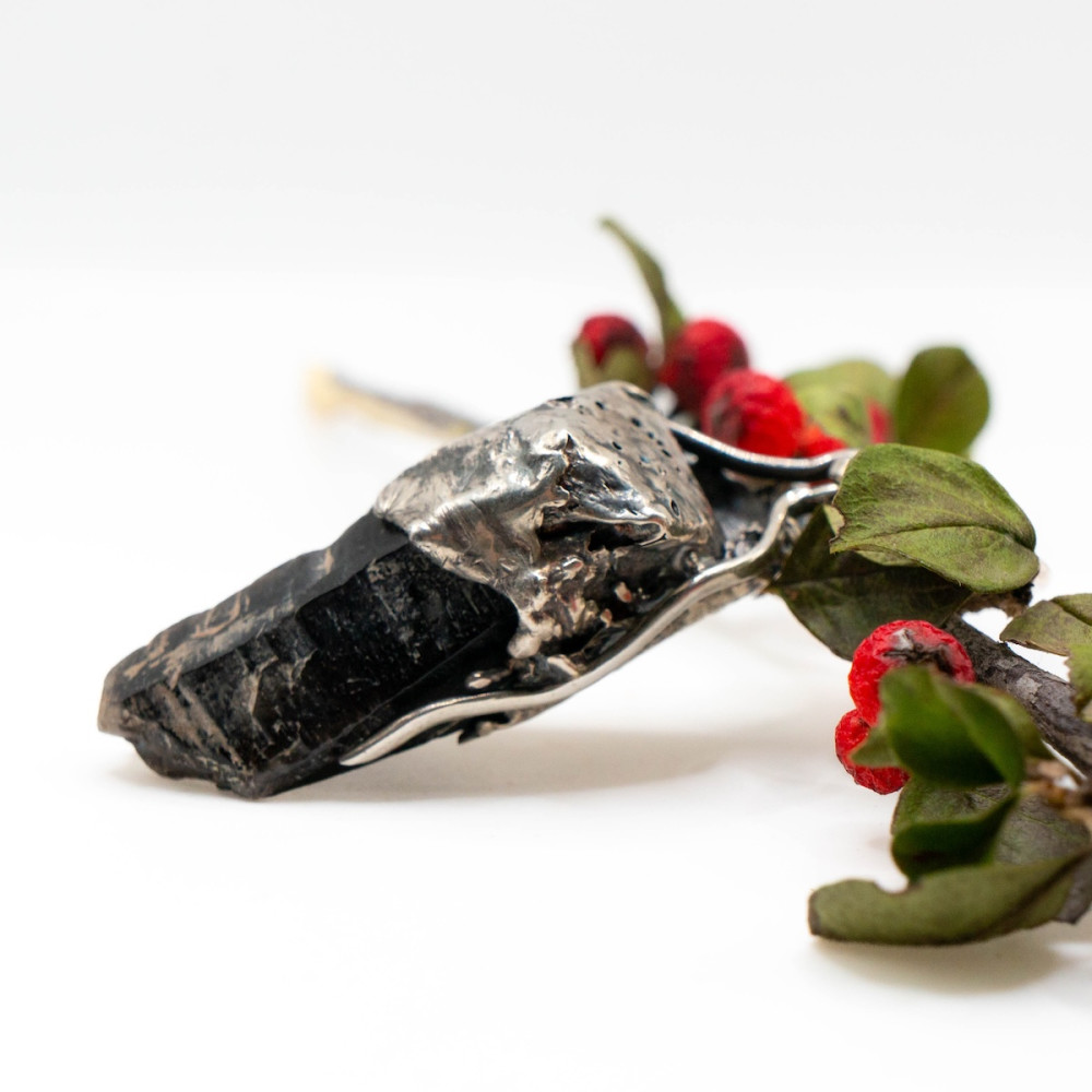 Темний кристал, ніби уламок ночі, зберігає в собі глибину й таємницю. Неогранений моріон підкреслює природну красу каменю та його силу — його вважають символом захисту, внутрішнього спокою та впевненості. Такий кулон створений для тих, хто цінує природність і неповторність.