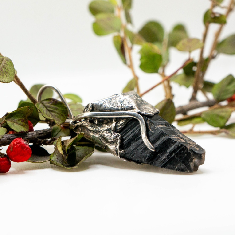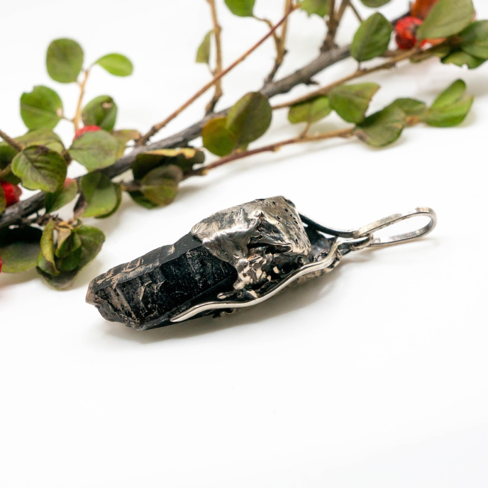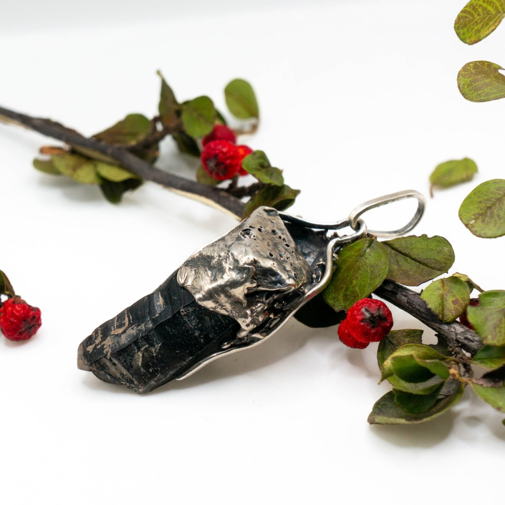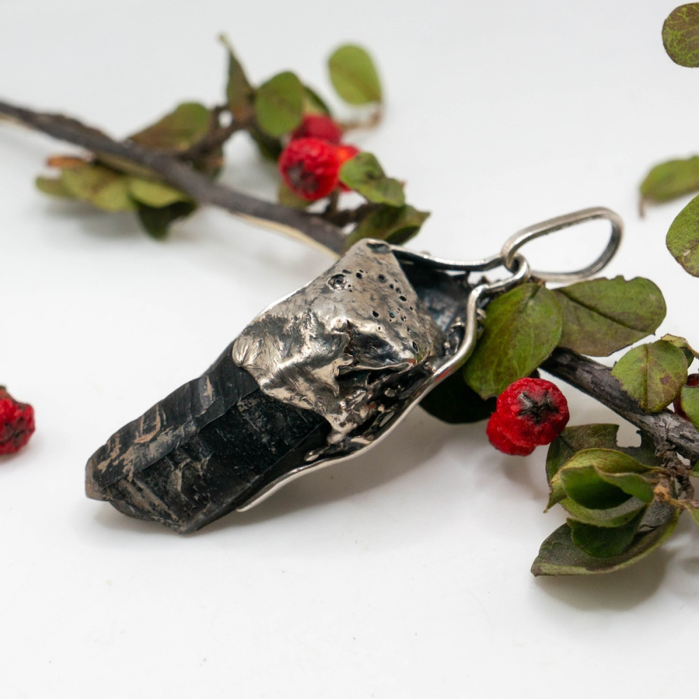 Срібний кулон із необробленим моріоном — прикраса з потужною енергетикою та природним характером.