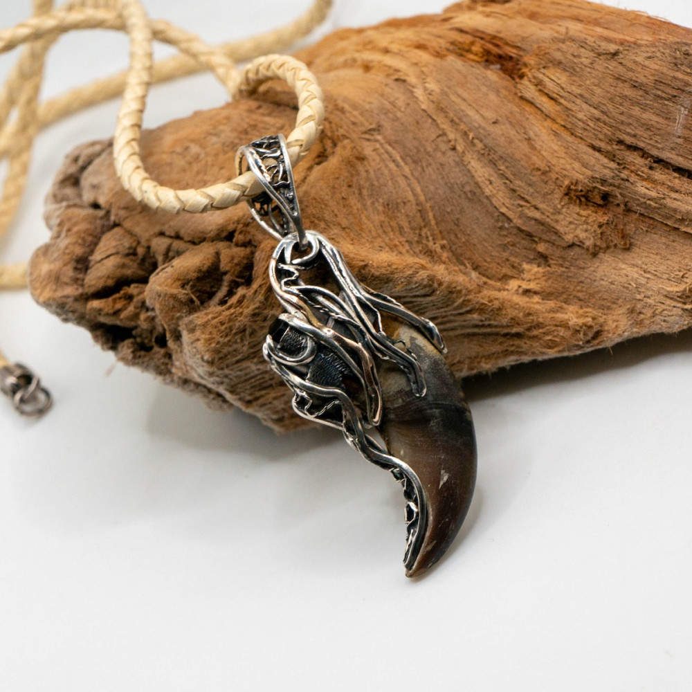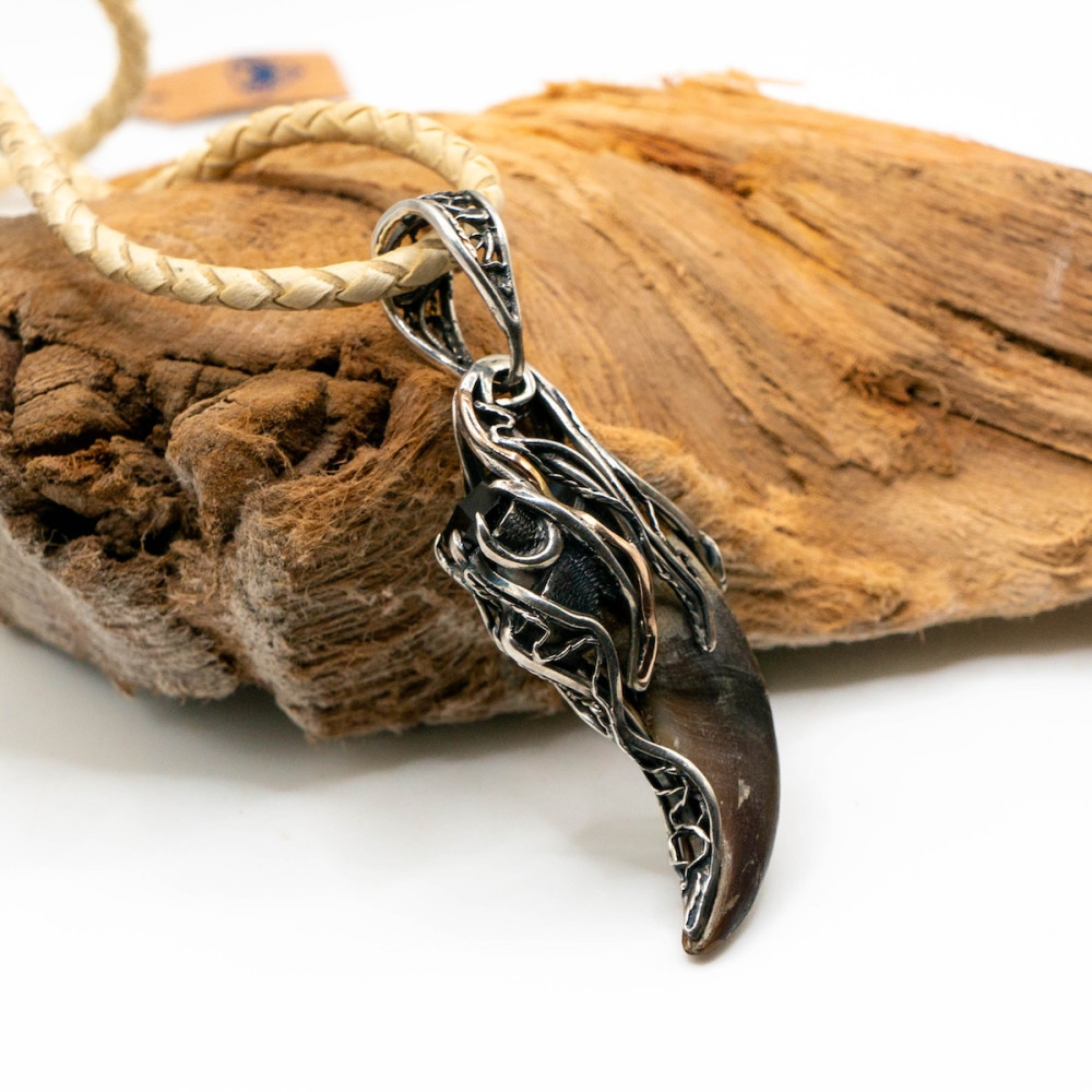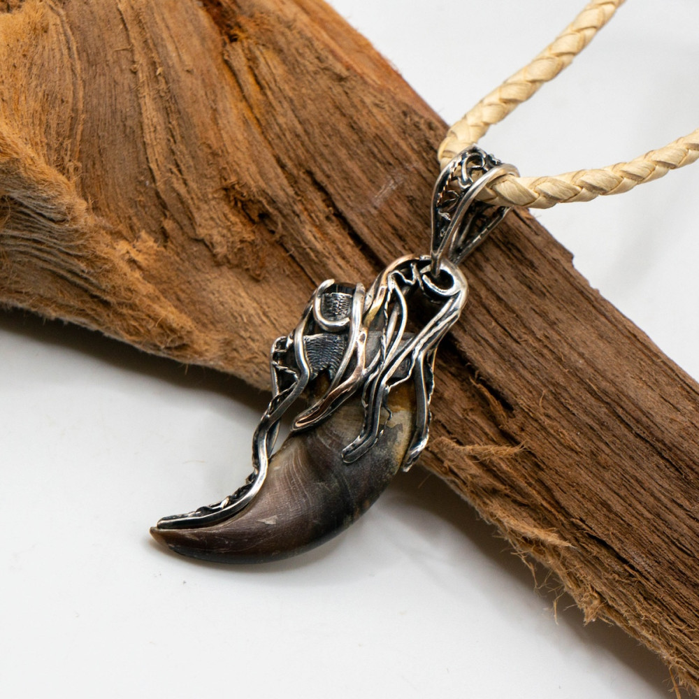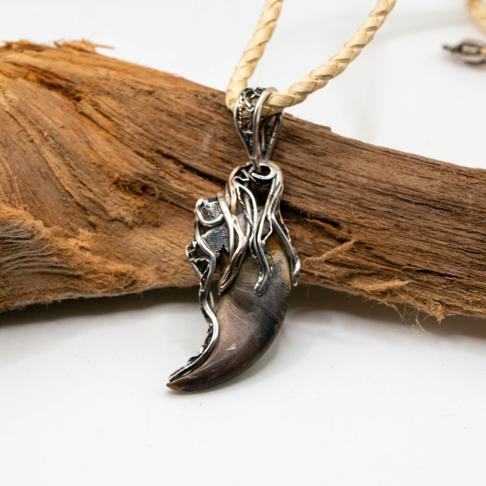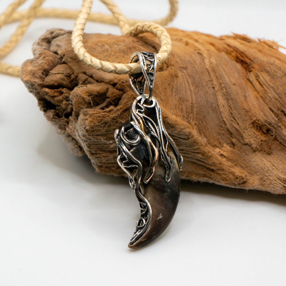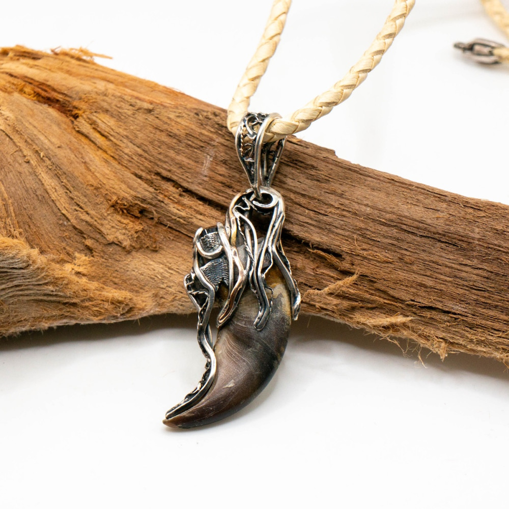 Цей кулон — символ сили й захисту. Благородне срібло вдало поєднується з теплим сяйвом золота. Ведмежий кіготь уособлює відвагу та міць, а шерл (чорний турмалін) здавна вважається потужним оберегом, що відводить негатив та надає внутрішньої стійкості.