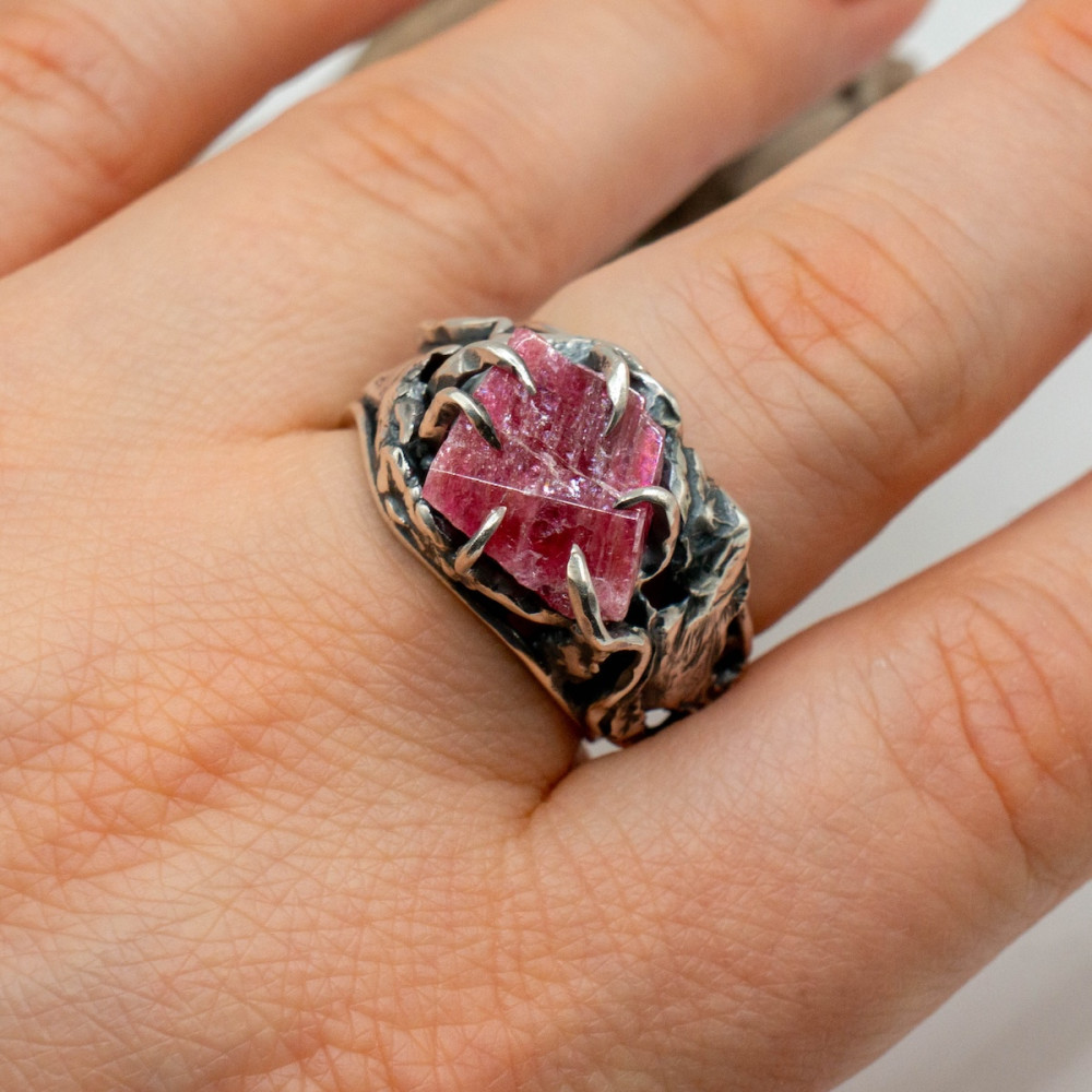 Авторська оправа зі срібла, виконана вручну, підкреслює масивність і виразність форми, додаючи відчуття сили та впевненості. Перстень комфортно відчувається на руці й стає ключовим акцентом образу.